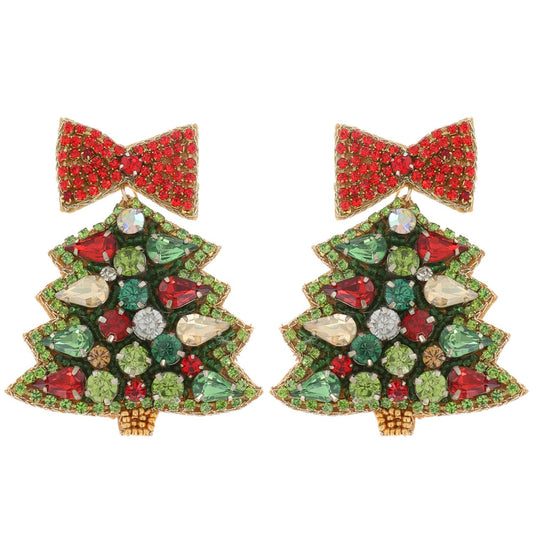 Jeweled Christmas Tree Beaded Embroidery Earrings